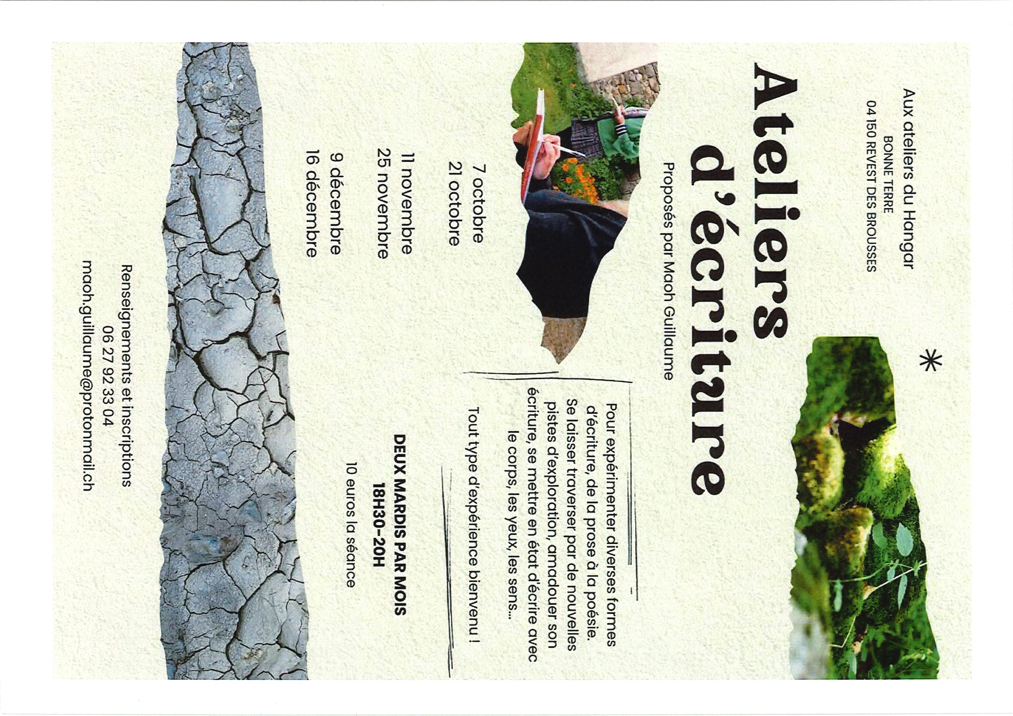 LE HANGAR : ATELIERS D'ECRITURE DEUX MARDIS PAR MOIS