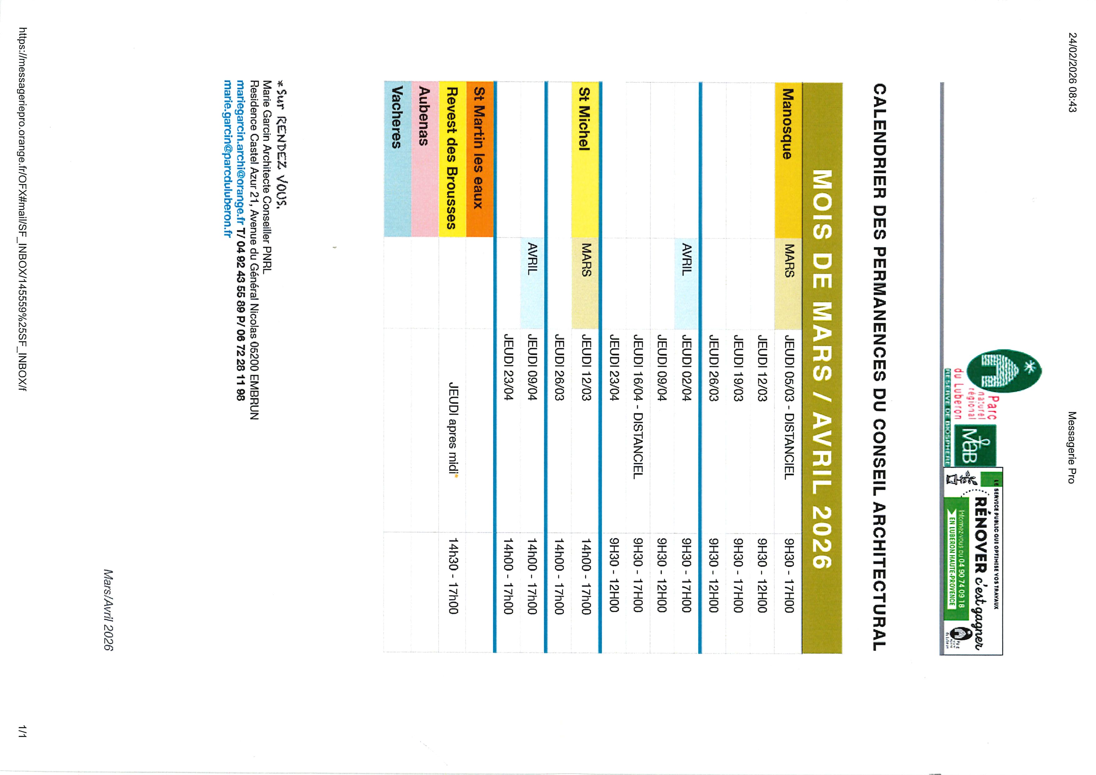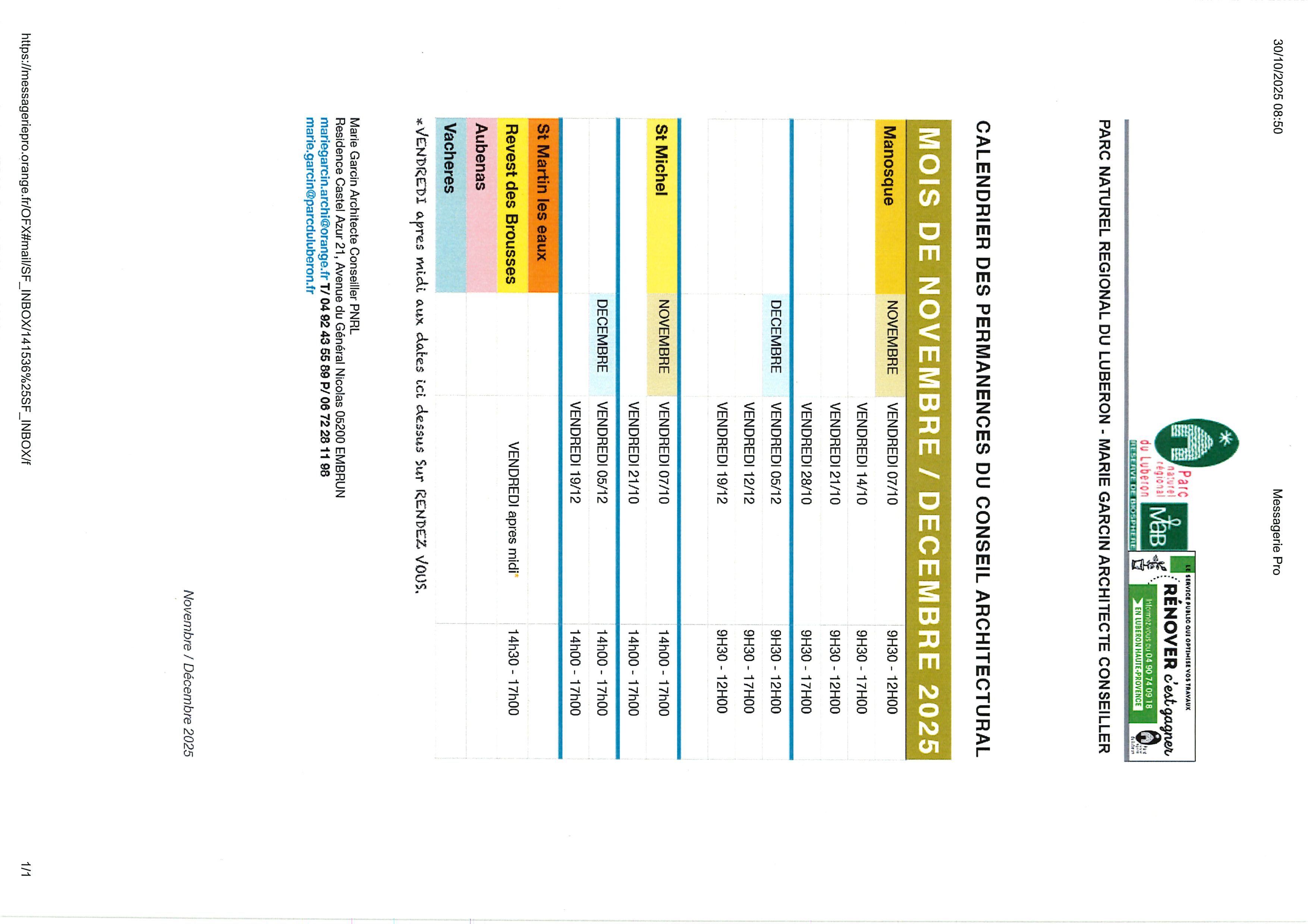PERMANENCES DE L'ARCHITECTE CONSEIL DU PARC DU LUBERON