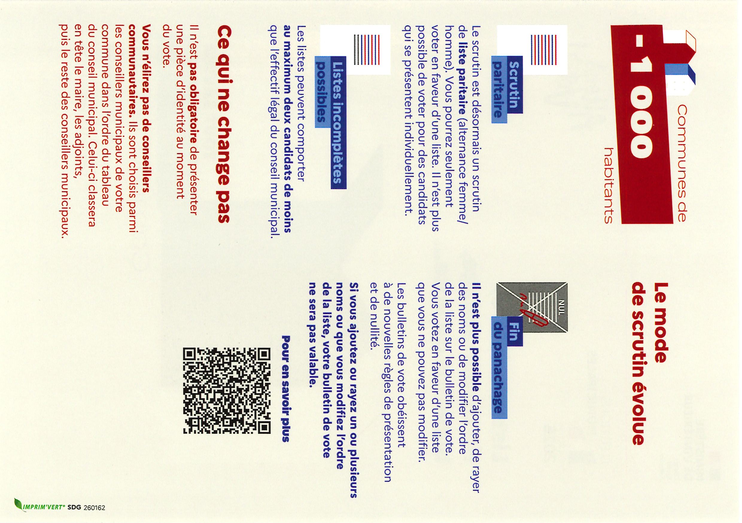 CHANGEMENT DU MODE DE SCRUTIN POUR LES COMMUNES DE MOINS DE 1000 HABITANTS
