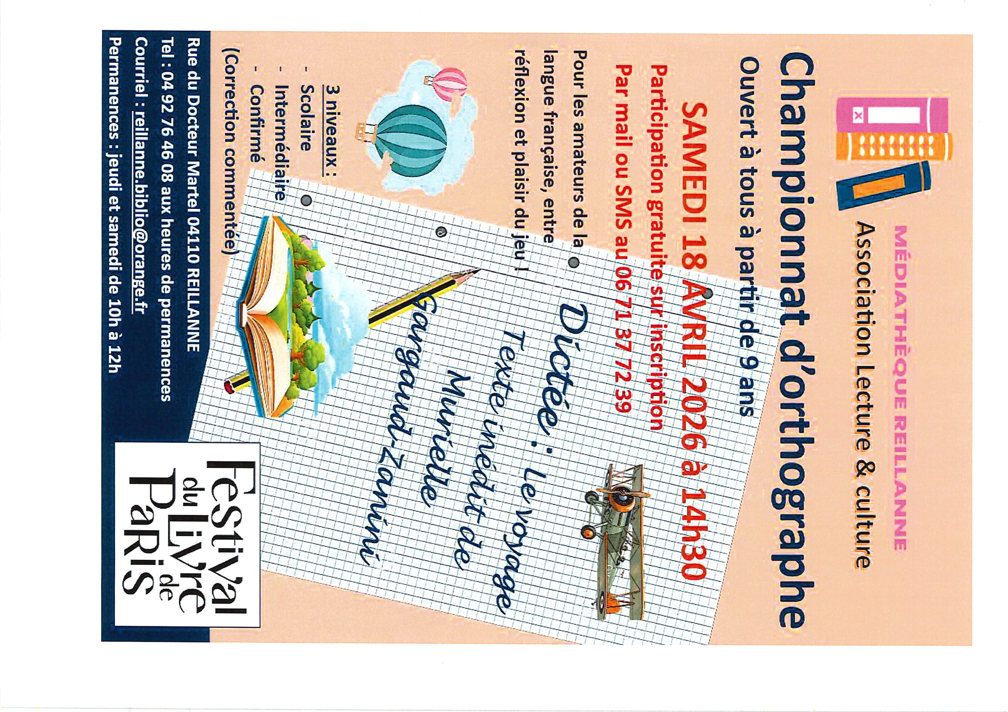 SAMEDI 18 AVRIL À REILLANNE : CHAMPIONNAT D'ORTHOGRAPHE